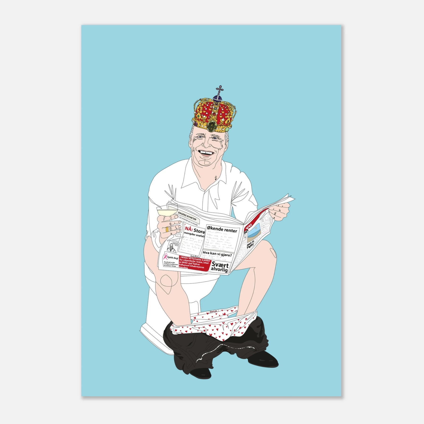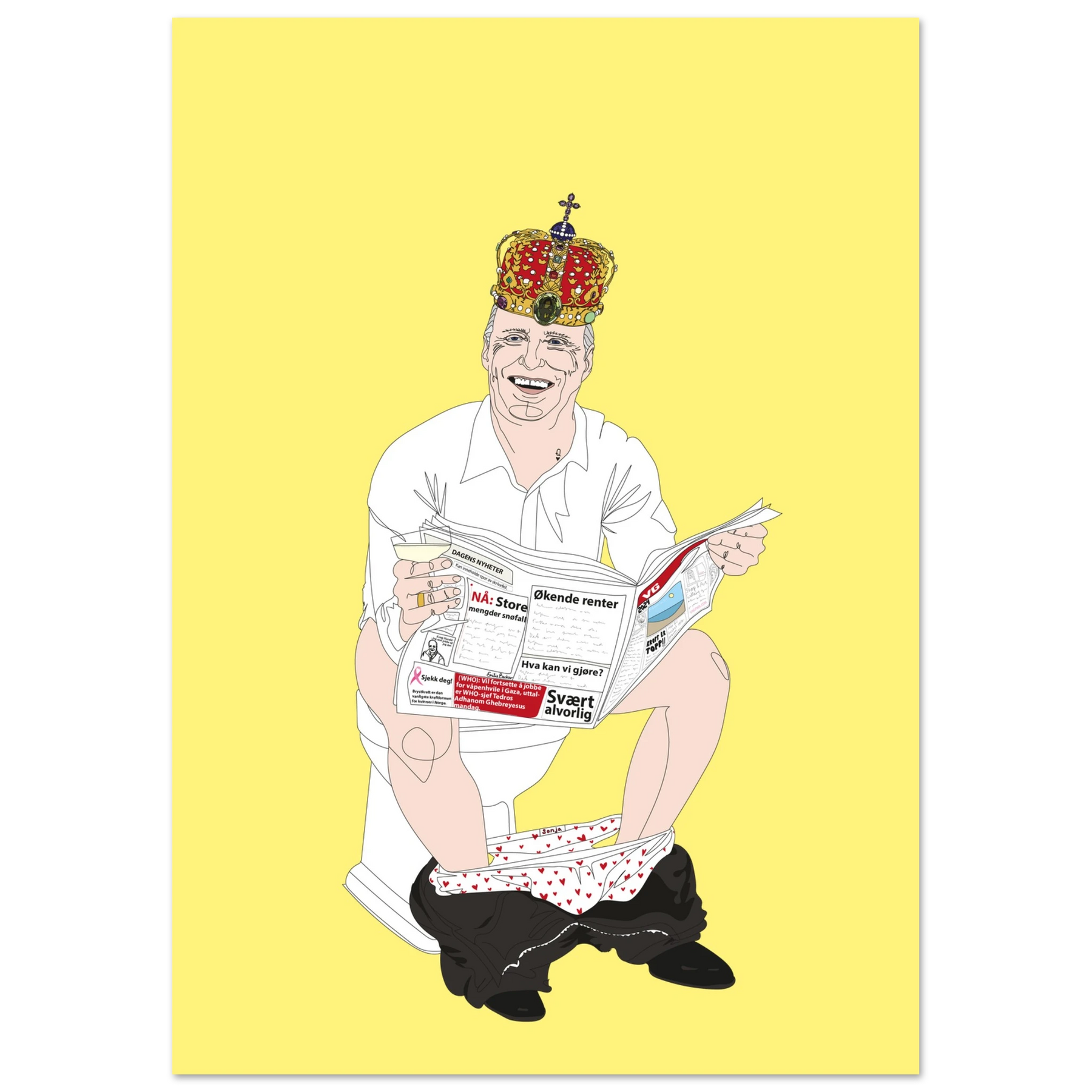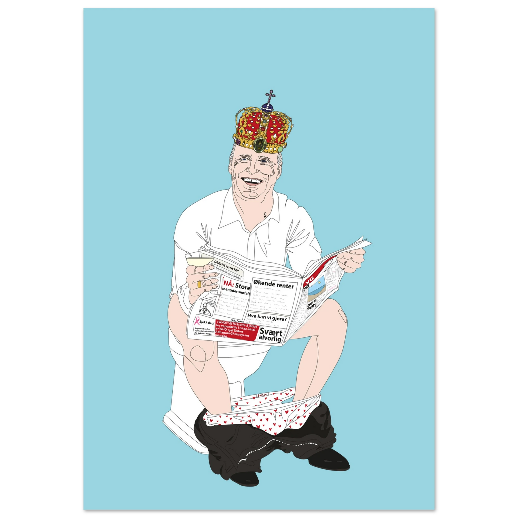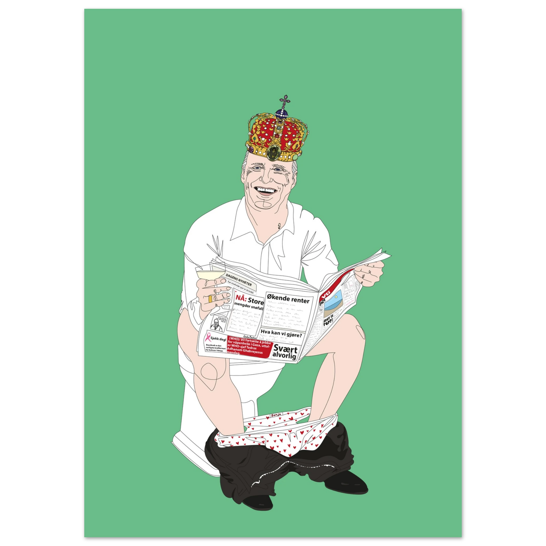 The Norwegian king on the toilet.