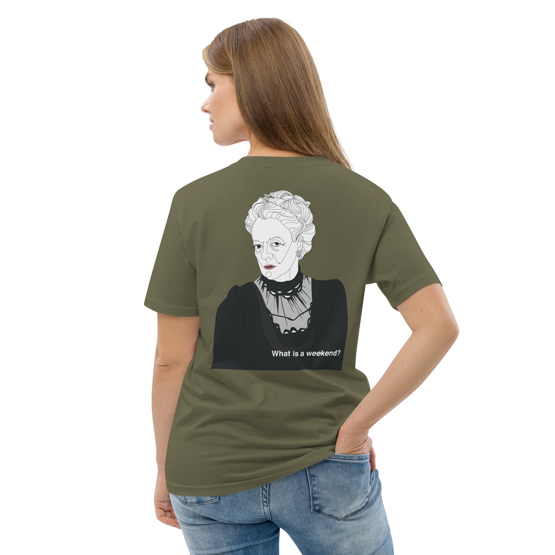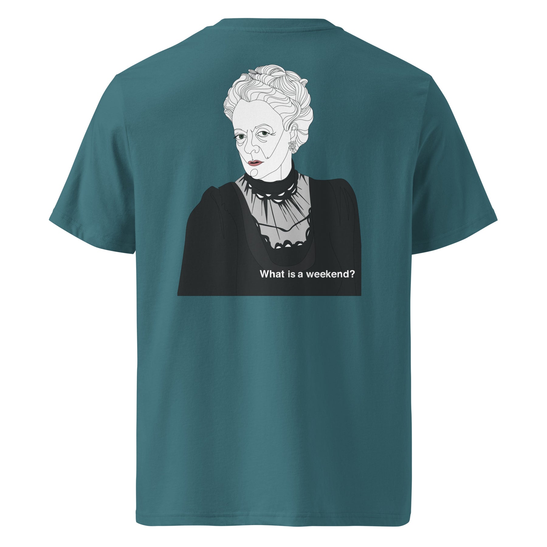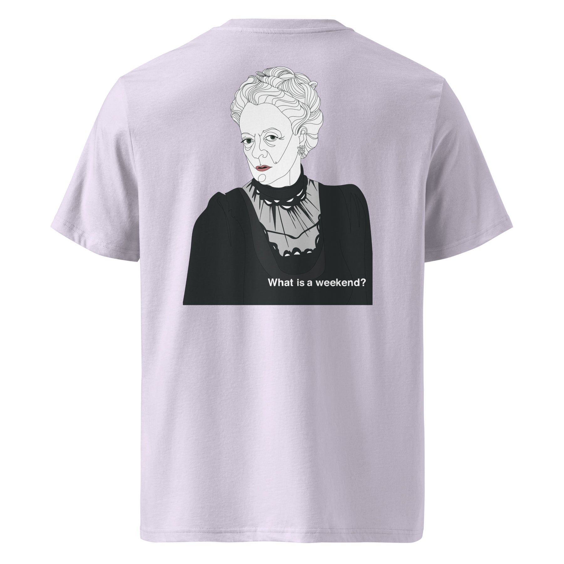 Illustration of Violet Crawley (Maggie Smith) from Downton Abbey, asking "What is a weekend?"