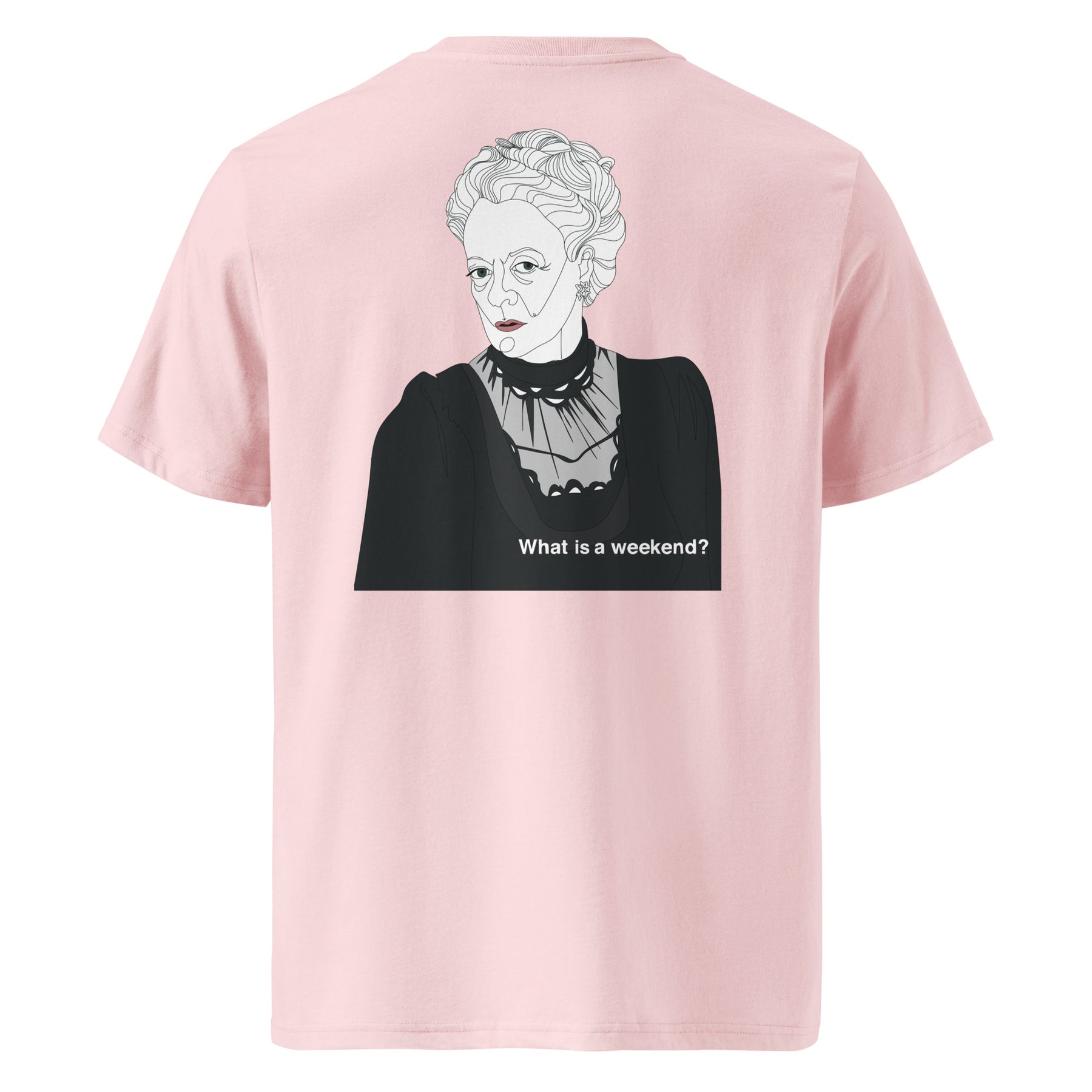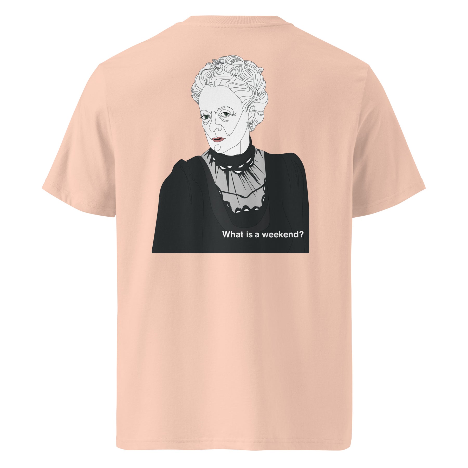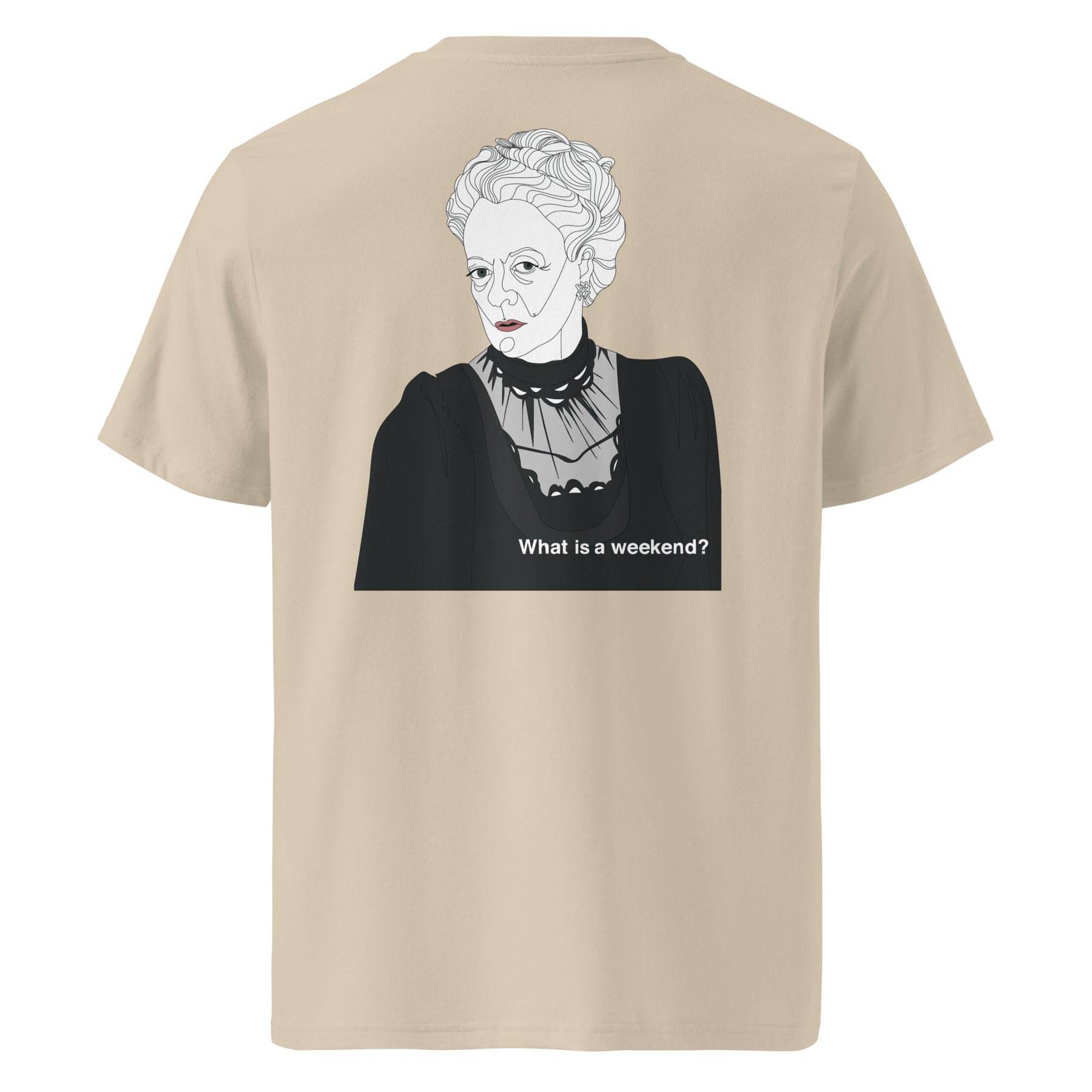 Illustration of Violet Crawley (Maggie Smith) from Downton Abbey, asking "What is a weekend?"