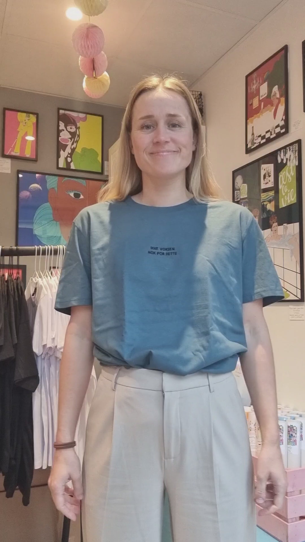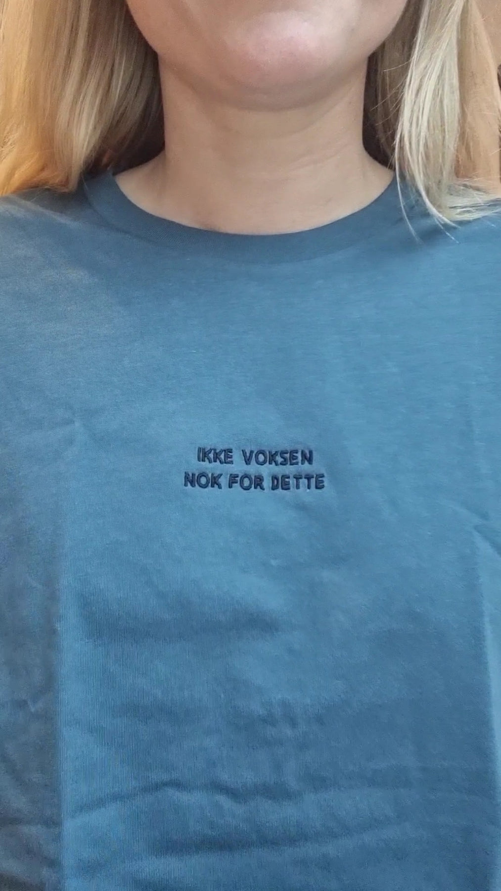 Embroidery text "Ikke voksen nok for dette" (Not old enough for this).